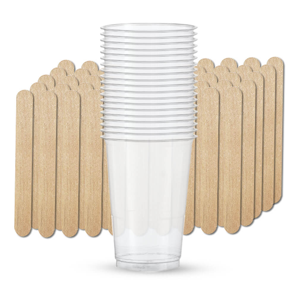 50 spatules en bois et 25 gobelets mélangeurs de 3 dl