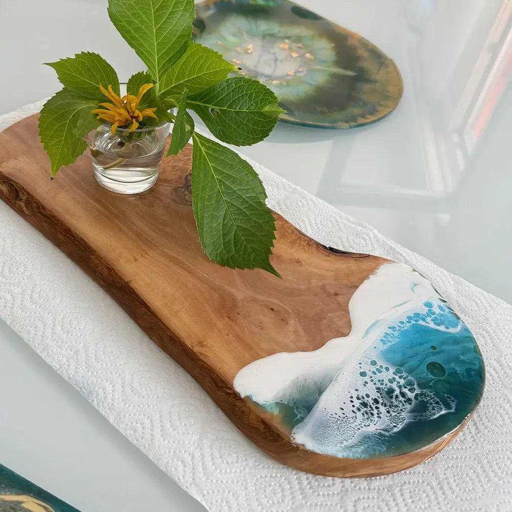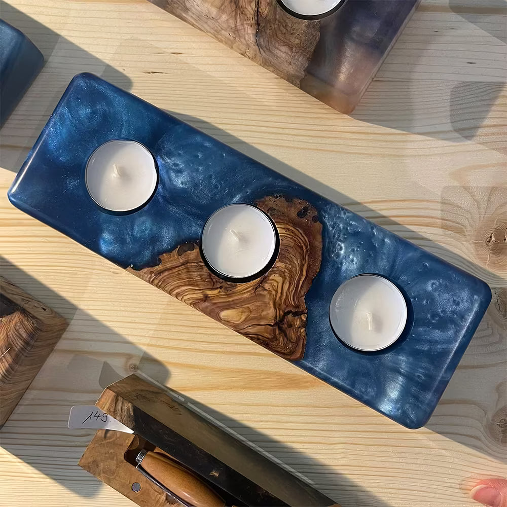 - Giessen einer Beistelltisch-Platte aus Olivenholz & Effektpigmenten