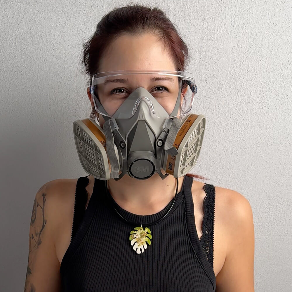 Diese Atemschutz-Halbmaske und Filtern schützt vor organischen Gasen und Dämpfen (A2), die beim Mischen und Vergiessen von Epoxidharz entstehen können.