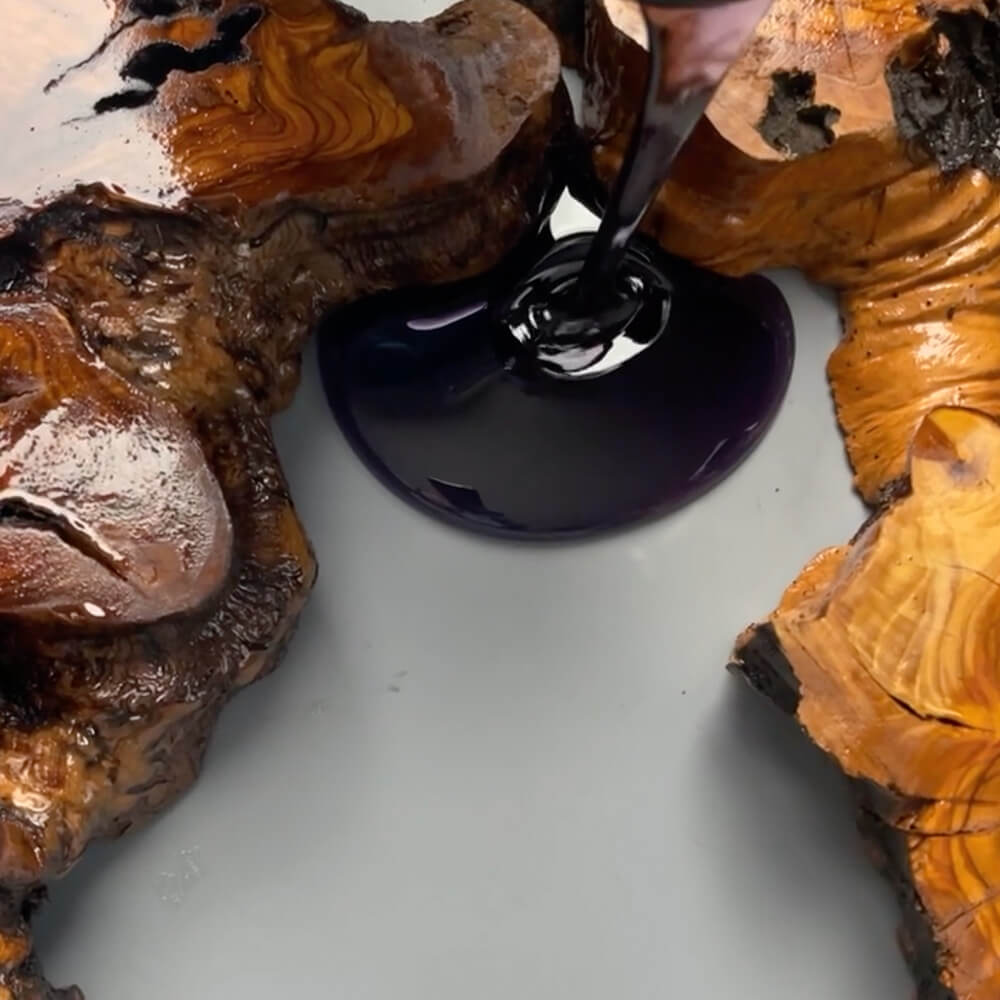 Einfach die gewünschte Farbe der angemischten Harzmasse hinzufügen und losgiessen.
