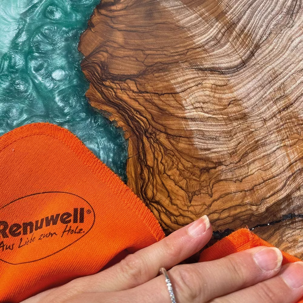 Wir verwenden das Poliertuch mit der Holzbutter aus unserem Sortiment