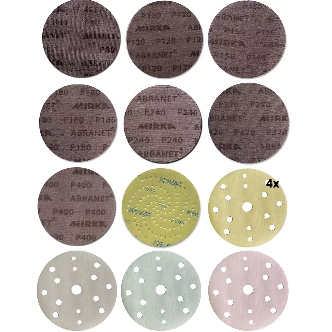 SET: Trocken-Folien-Schleifscheiben Ø 150 mm, P80 bis K3000 je 1 Stück (grob bis fein)