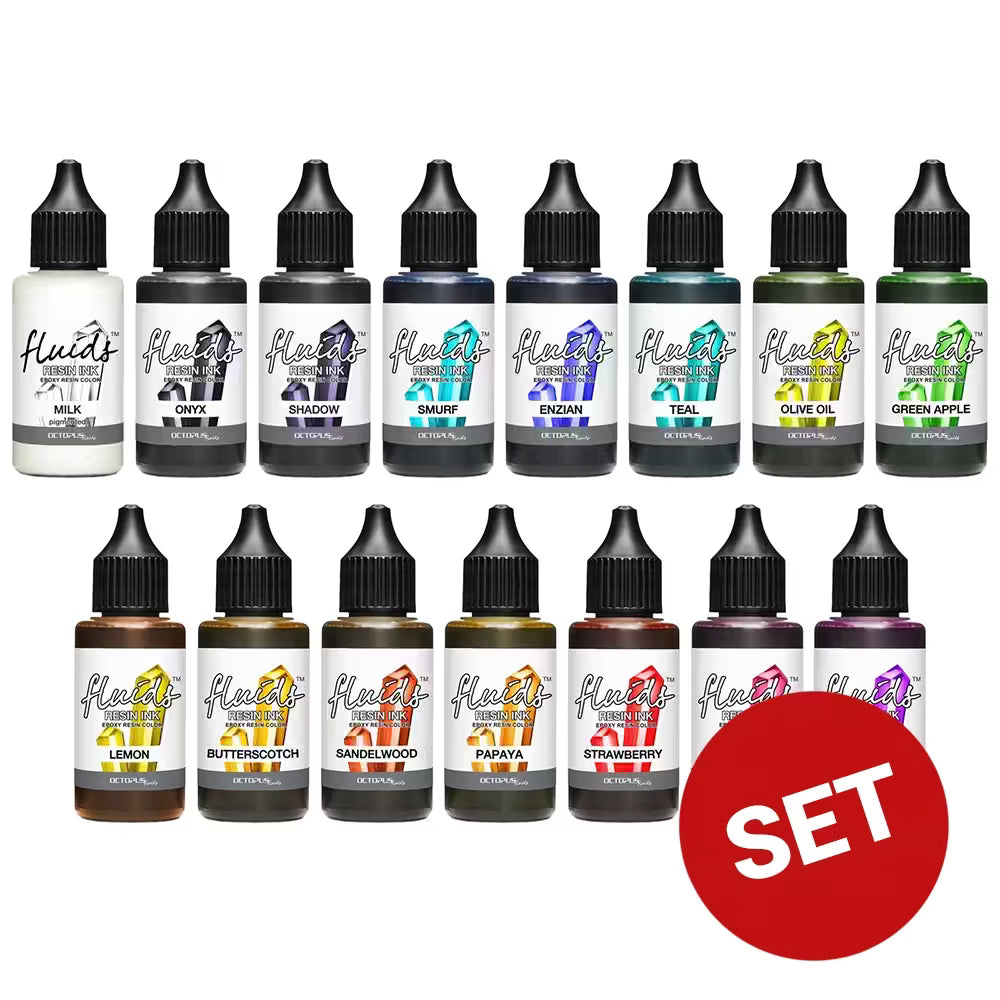 Die Octopus Fluids Resin Inks wurden speziell zum Einfärben von Epoxidharz und UV-Harz entwickelt. Das Vermengen der Farben mit Epoxidharz ist deutlich einfacher als bei üblichen Alcohol Inks, da die Farben weniger an der Oberfläche schwimmen. Perfekt für DIY-Künstler!